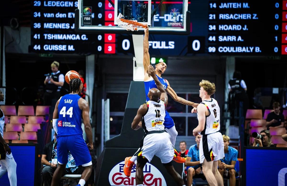 今年这支法国男篮非常年轻,巴图姆、富尼耶等老将早已离队,里萨谢、萨尔、库利巴利、文班亚马等年轻球员冉冉升起,真是人才济济呀。其中,里萨谢和文班都是状元出身,萨尔为24年的榜眼,库利巴利也是首轮第7顺位的天赋型球员,上赛季在奇才,场均能拿到12.3分5.0篮板3.4助攻的全面数据。今年欧锦赛比较可惜的是,文班亚马和戈贝尔两大核心都因伤病缺席,尽管如此,欧锦赛实力榜上,法国队也能排在第三名,仅次于德国男篮和塞尔维亚。这场比赛,法国队五人得分上双,库利巴利12分7篮板,里萨谢10分,亚布塞莱11分。